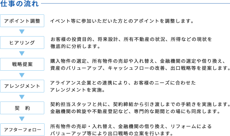 ● ニーズがあり、⾼還元に繋がる商材”投資⽤不動産”を扱います。