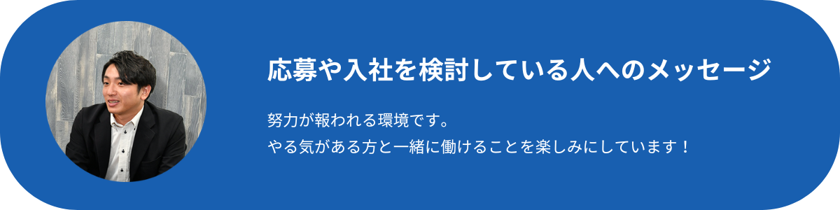 もっと幅広い業務に挑戦して、自分の力を試したいという思いから転職を決意しました。 |